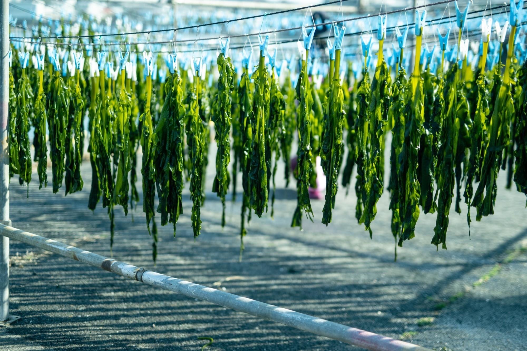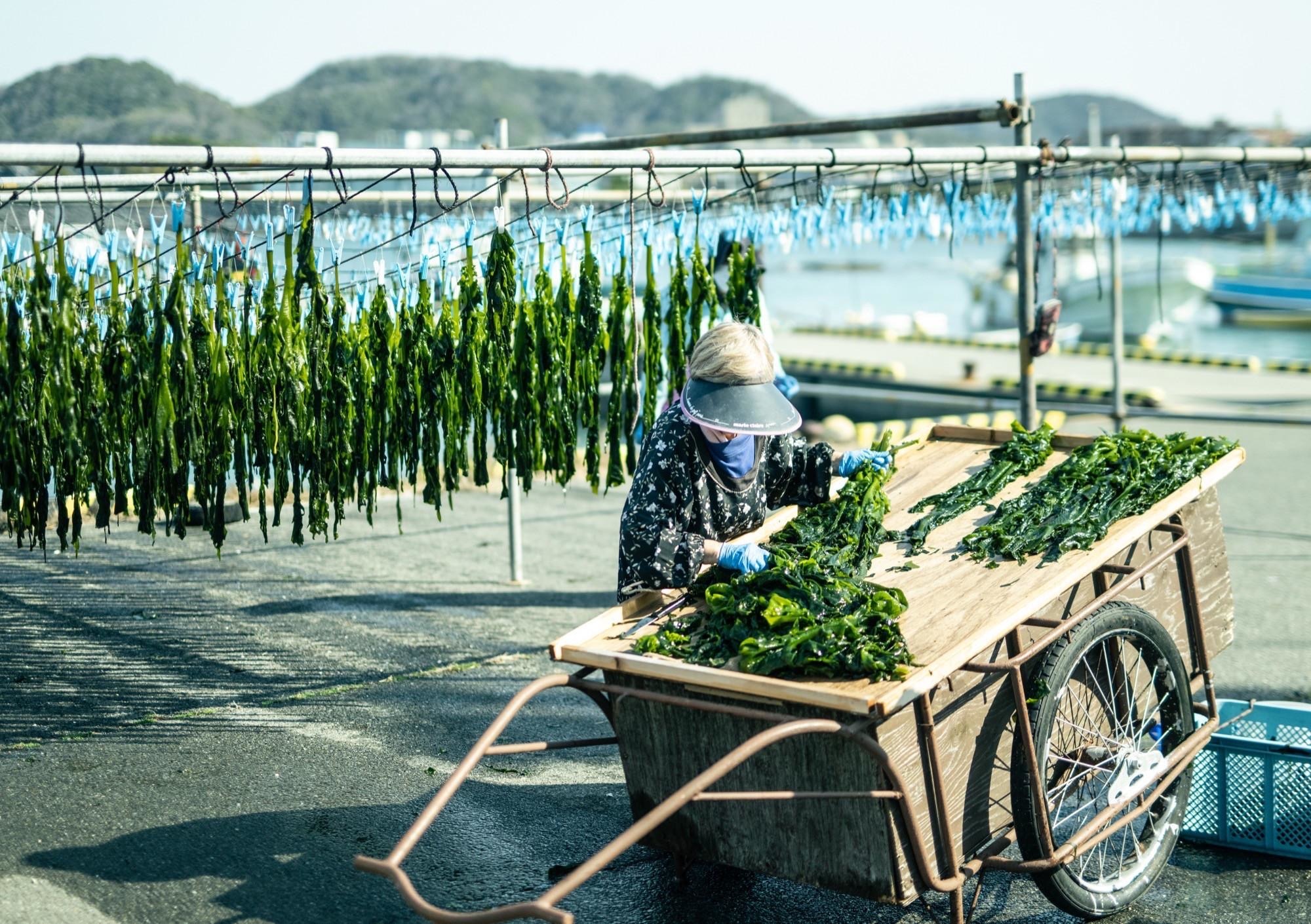 天日干しワカメの作業風景